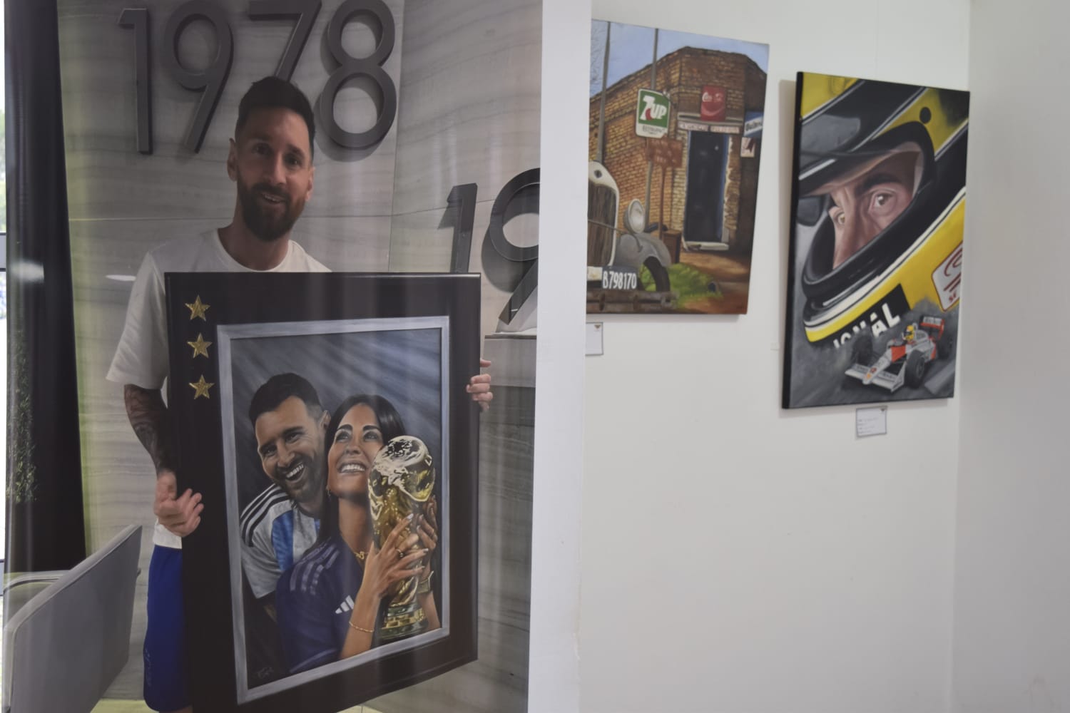 Un punto destacado de la muestra es la pintura de un niño junto a Lionel Messi, que rememora la obra que la artista Claudia Olefnik entregó personalmente al capitán del seleccionado argentino de fútbol. Es importante recordar que dicha obra retrata a Messi con su esposa Antonela Roccuzzo y la Copa del Mundo.