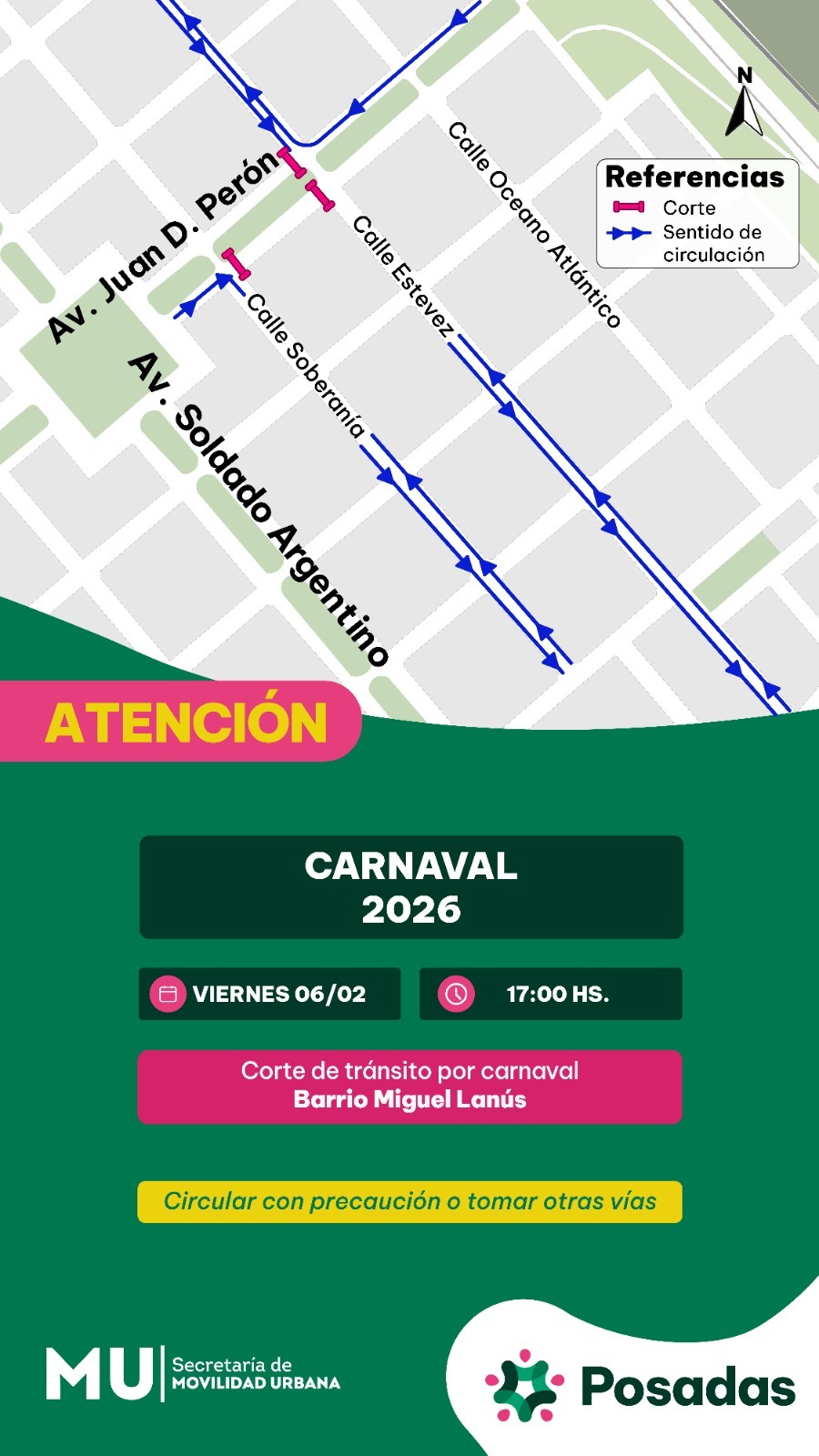 Cortes de tránsito programados por los Carnavales 2026 en Posadas