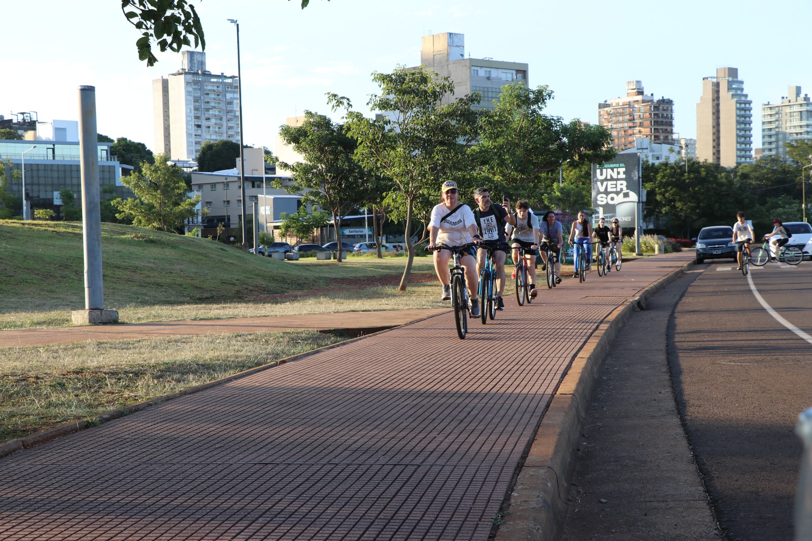 El punto de partida fue el puesto de Ecobicis del cuarto tramo de la Costanera. Desde allí, los ciclistas se dirigieron al mural titulado “Mitos de la Selva Misionera y Guaraní” (sobre la Av. Gobernador Ayrault), que destaca figuras legendarias de la región. Luego, tras una breve reseña de la obra de la artista Sofía Vogler, el grupo pedaleó hasta la cabecera de la Costanera, frente al muro que separa Argentina de Paraguay. Esta obra fue reconocida por el Guinness World Records como el "mural dibujado a lápiz más grande del mundo", con una superficie de 149,59 m².
