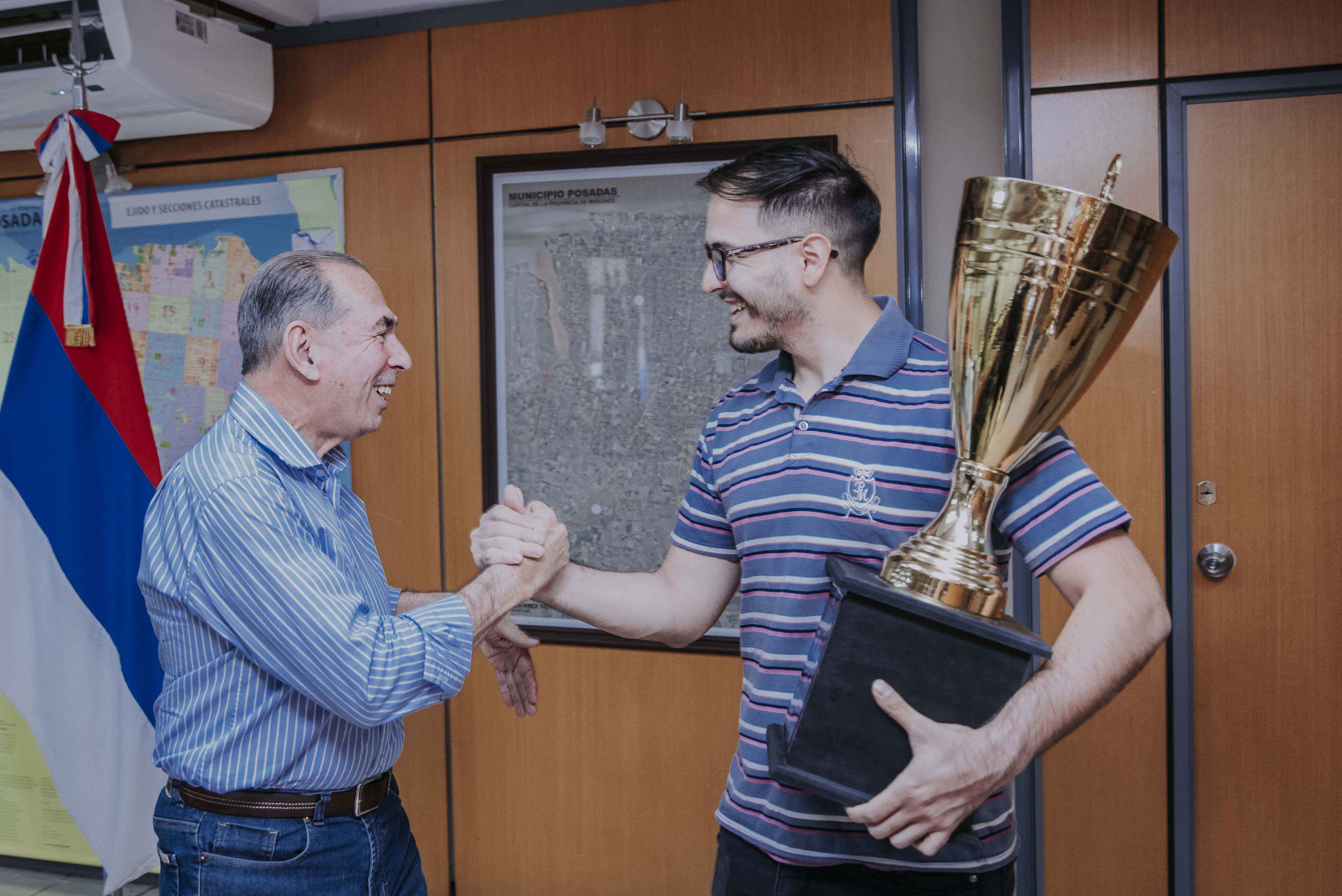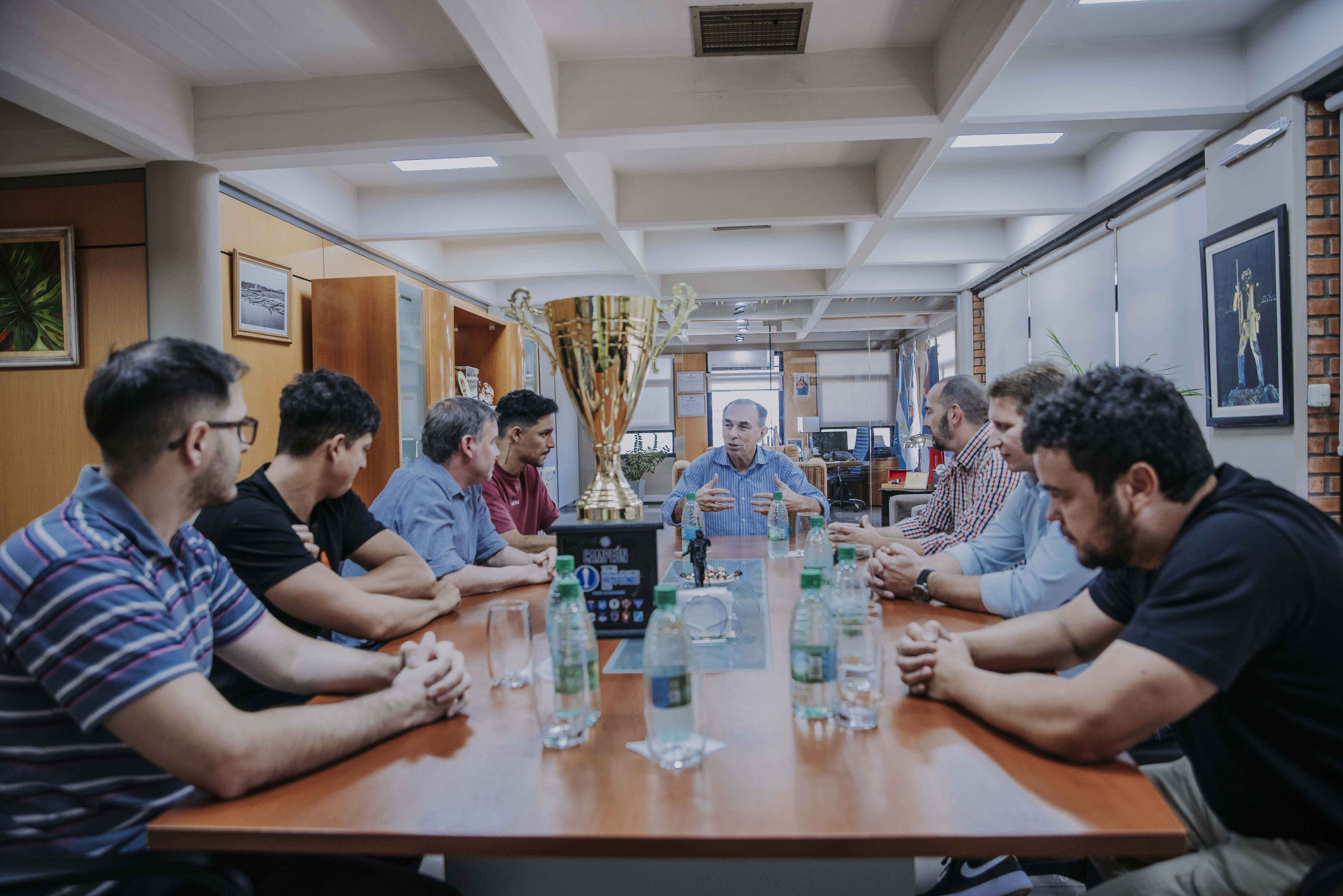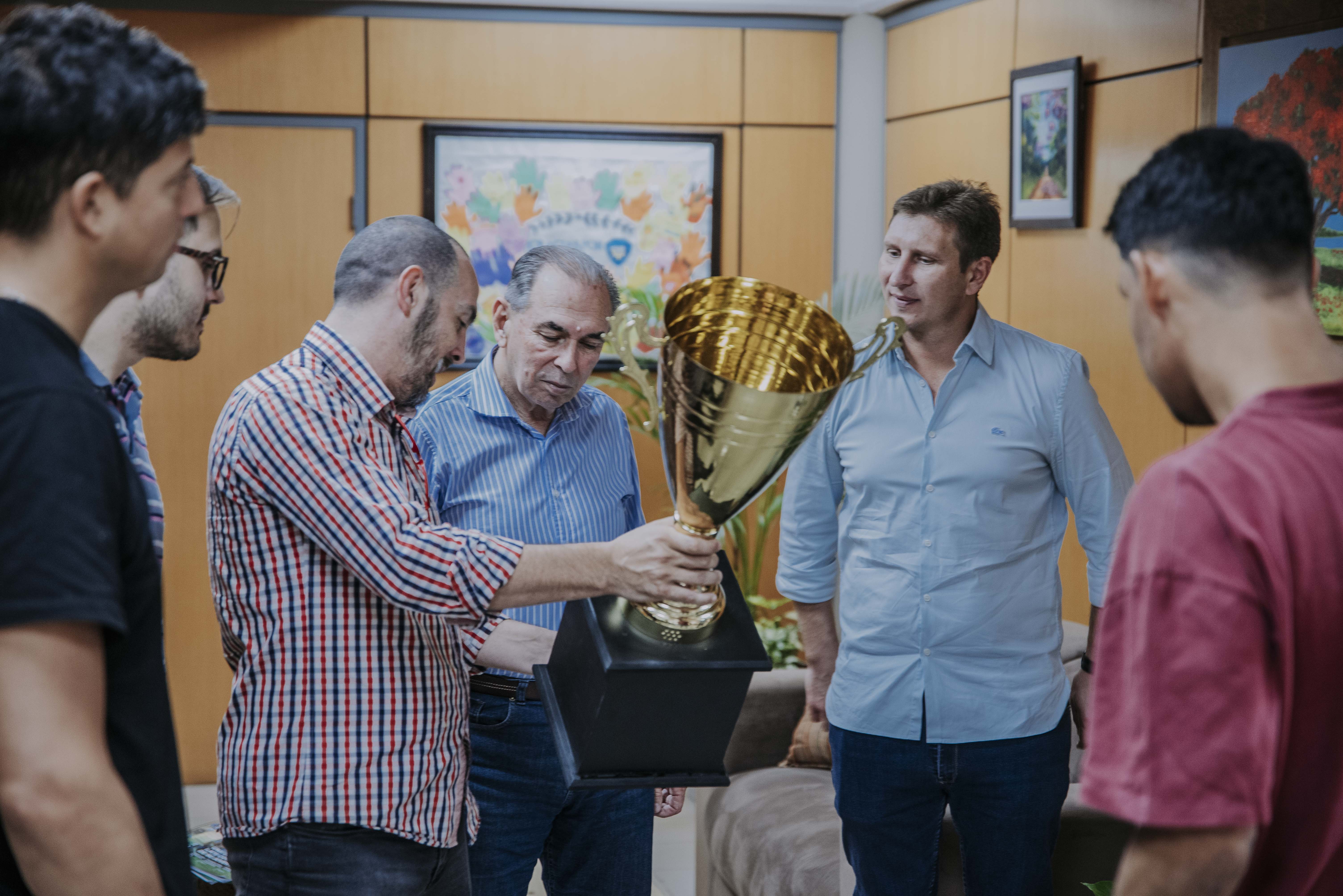El intendente Leonardo Stelatto recibió en su despacho al plantel de Telecentro Tacuarí, reciente ganador de la Copa Nacional de Clubes Campeones, organizada por la Confederación Argentina de Fútbol de Salón (CAFS).
