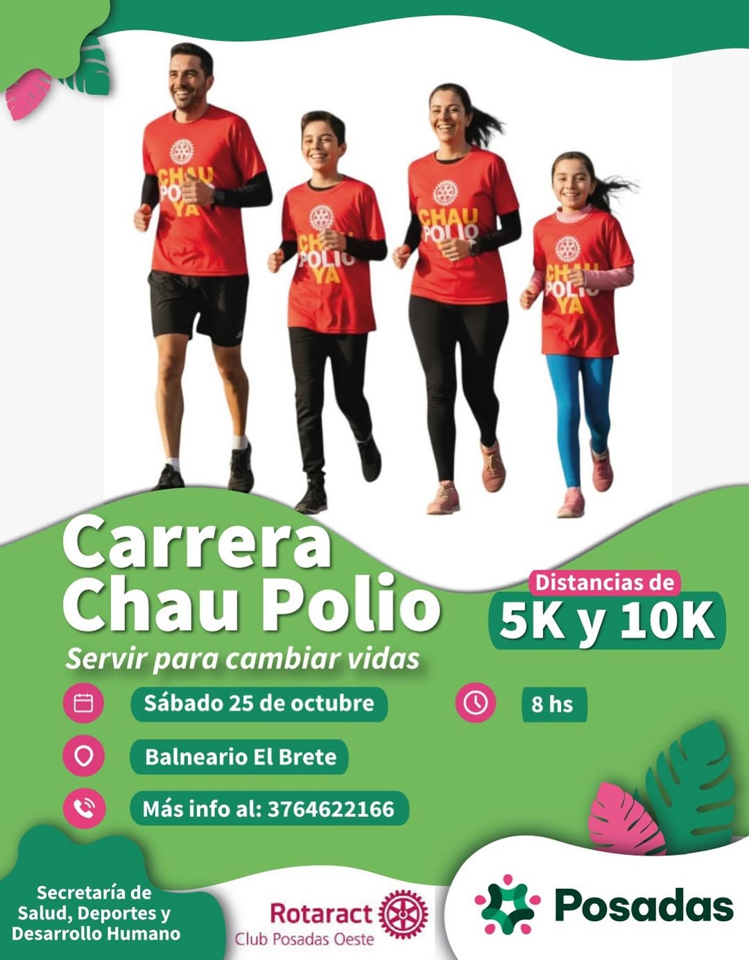 Este sábado 25 de octubre, desde las 08 h, la costanera de Posadas será escenario de una nueva edición de la carrera “Chau Polio”, una actividad solidaria que busca concientizar sobre la importancia de erradicar la poliomielitis en todo el mundo.