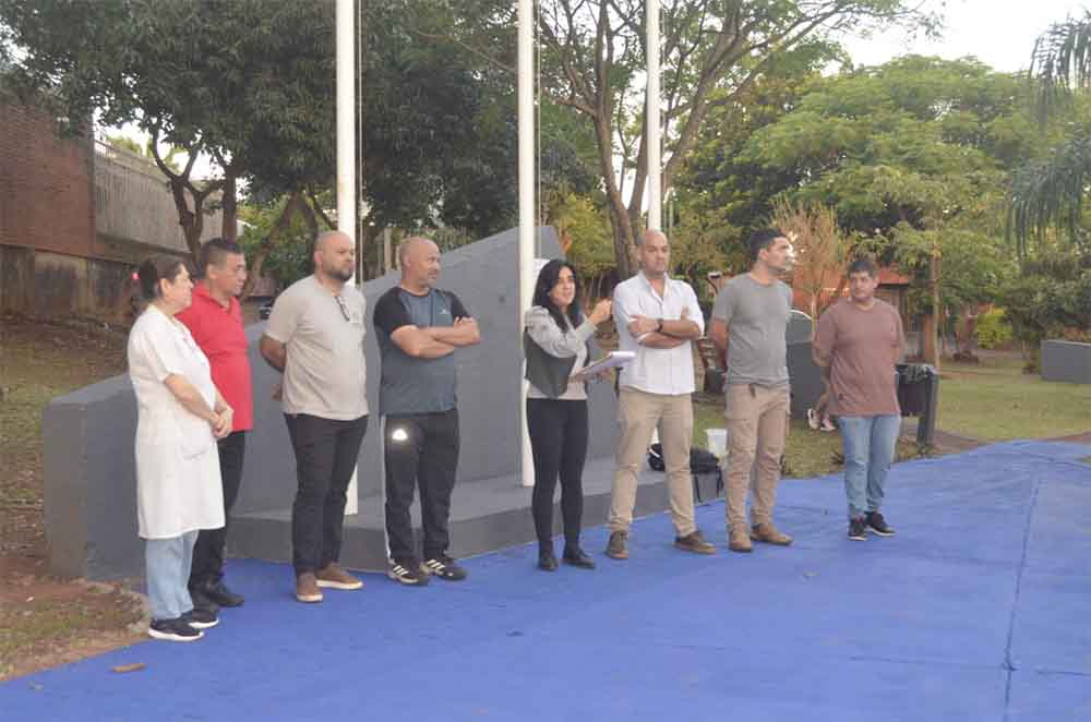 La ceremonia, donde se descubrió la placa de inauguración junto a los mástiles aledaños a la Escuela N° 783 "Los Kiris", contó con la presencia del secretario de Planificación Estratégica y Territorial, Marcelo Mazur; la coordinadora del Presupuesto Participativo, Thamara Ramos; el delegado de Santa Rita, Rubén Alvez; y el director de Asuntos Barriales, José Bogarín, junto a los autores del proyecto, vecinos y deportistas.