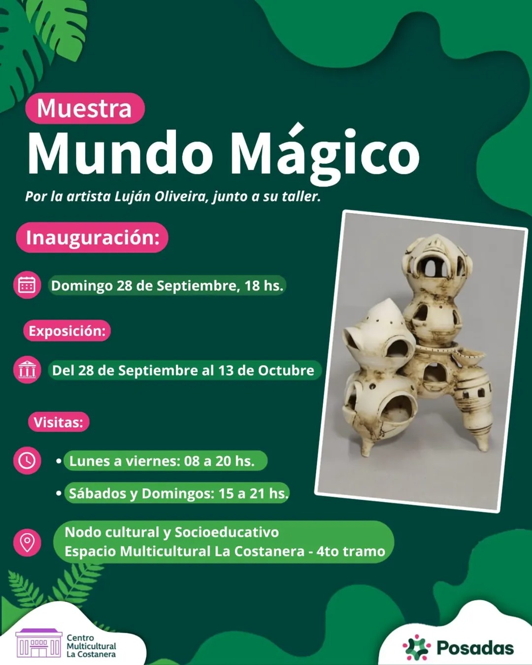 El domingo 28 de septiembre, desde las 18 horas, se inaugurará la muestra denominada "Mundo Mágico", de la artista Luján Oliveira y las alumnos de su taller.
