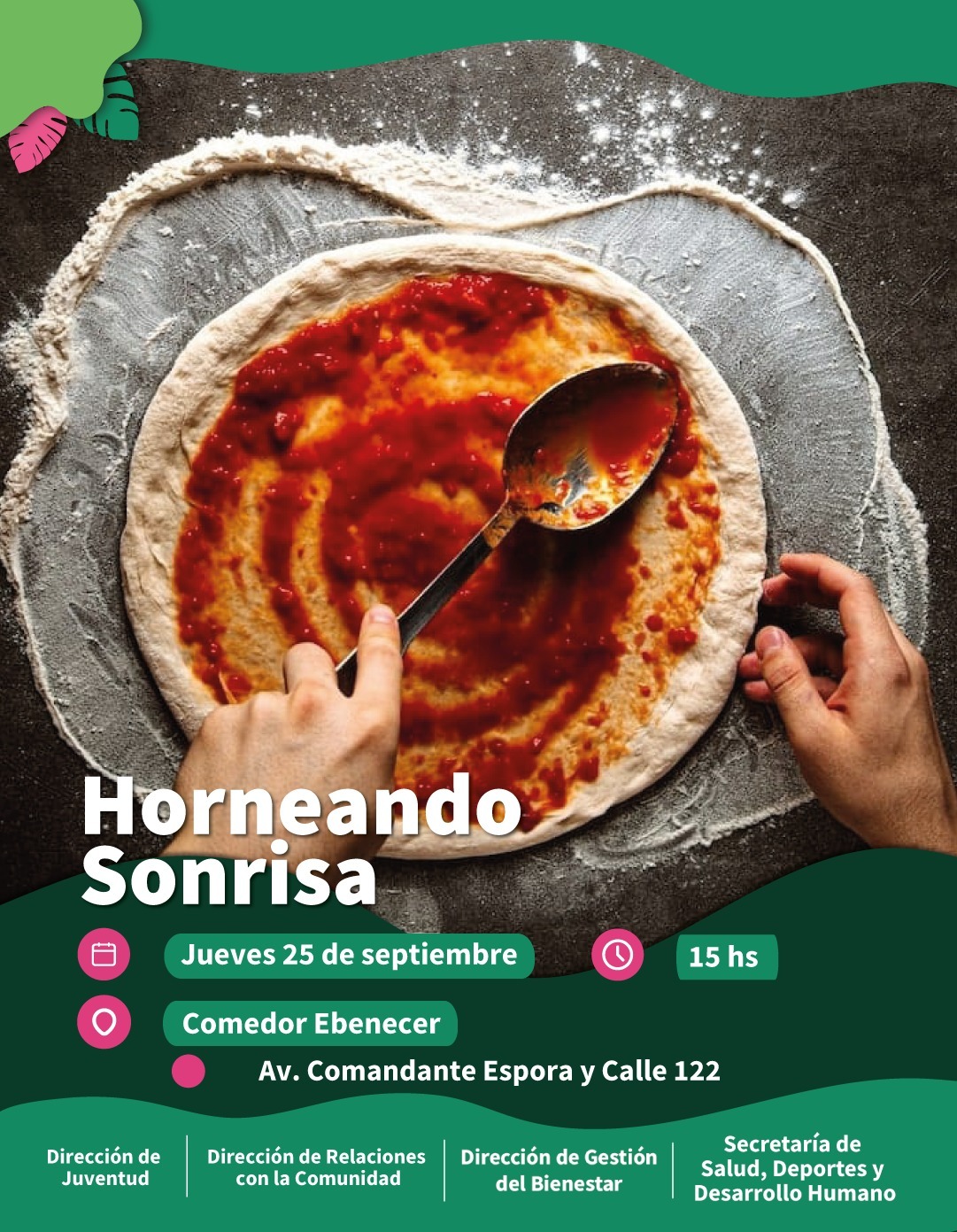 El Municipio invita a jóvenes y adultos de la chacra 26 y zonas cercanas a participar de la jornada “Horneando Sonrisas”, una propuesta que se desarrollará este jueves 25 de septiembre a las 15 horas en el Comedor Ebenecer (Av. Comandante Espora y Calle 122).